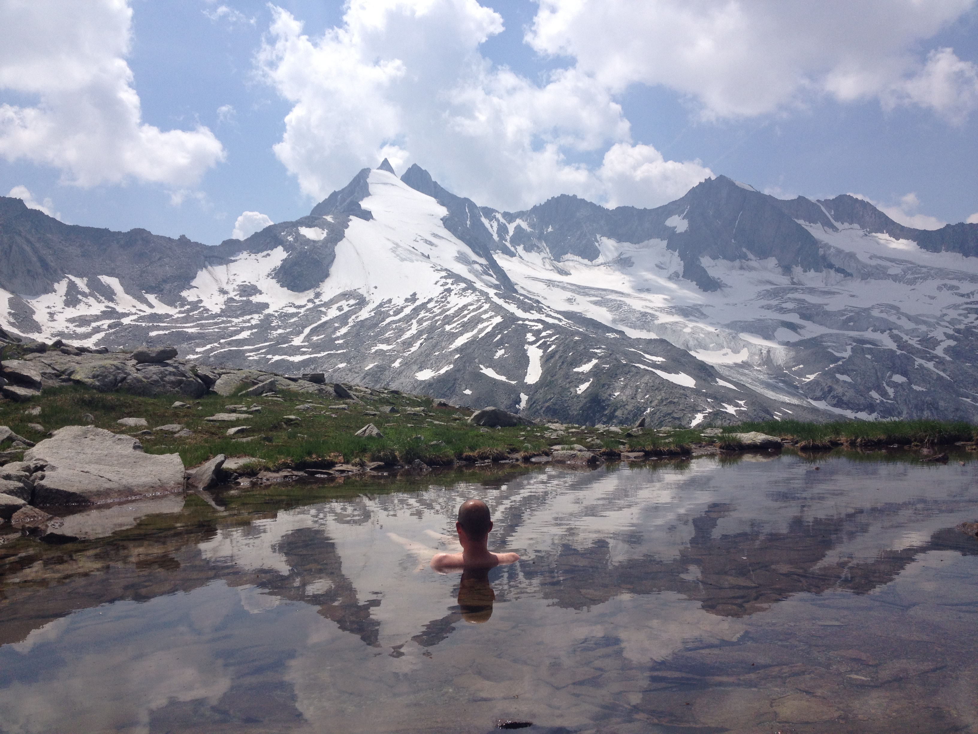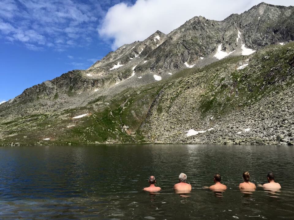 je Ki-punt. Na deze ontspannende oefeningen en een kop koffie, zijn we naar de de Rosskopfscharte gelopen op 2800 meter. Een prachtige wandeling van zo’n 3 uur totaal. Op de terugweg hebben we heerlijk gedipt en gezwommen in de Oberer Gerlossee. De zon was inmiddels tevoorschijn gekomen van