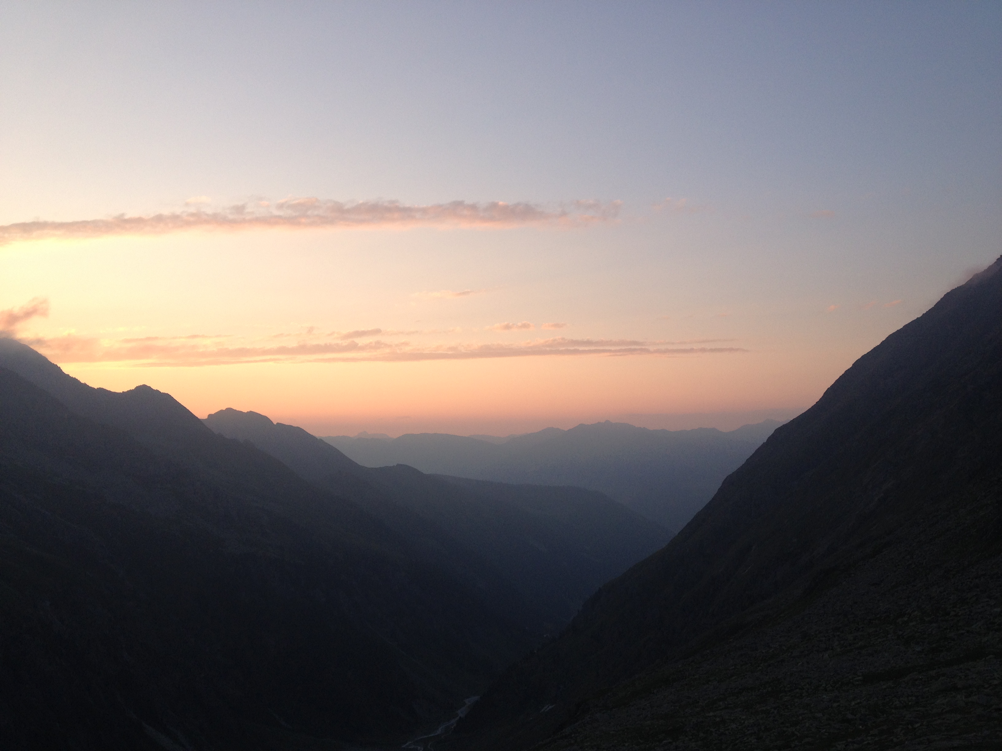 achter de wolken, dus nu was het nog mooier om de zonovergoten bergen te aanschouwen. Onderweg prachtige gesprekken over wat ons on het leven bezighoudt en vooral ook wat we eigenlijk zouden willen doen. Geweldig om zo intens in het nu alles te beleven. Geen telefoon of andere afleiding, geen beslommeringen, geen stress. Leven in het hier en nu, fysiek, emotioneel, spiritueel en mentaal bezig zijn en vooral ook laten gebeuren. Terug bij de hut was er voldoende tijd voor overdenking, versnapering, meditatie of gewoon lekker een middagdutje. Ook nu weer mooie intense gesprekken tijdens het diner. Na het diner vroeg in de veren want de eerste ademhalingsmeditatie zou om 6.15 uur plaatsvinden.